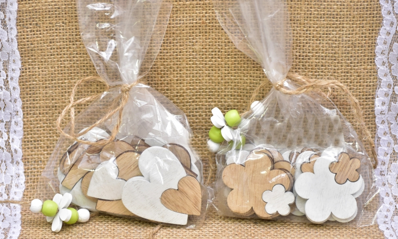 Balení 12 ks dřevěných dekorací. V balení jsou dva sáčky dřevěných dekorací po 6 ks. Tzn. 6ks květinek a 6ks srdíček.Materiál: dřevoRozměr:průměr 4 cm prečítať celé