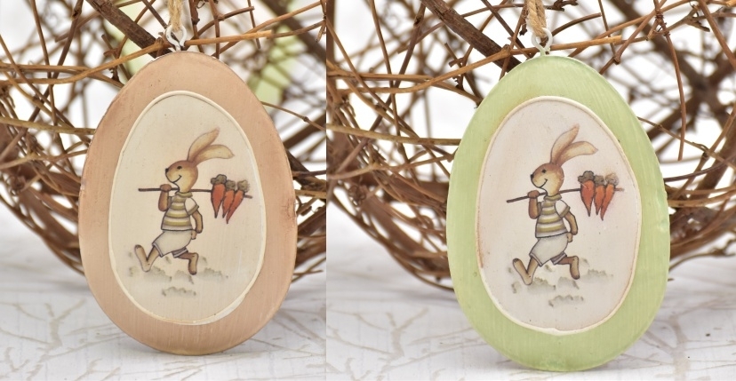 Dekorativní kovová vajíčka na zavěšení se zajíčkem.Materiál: kovBarva: hnědá, zelenáRozměr:výška 10 cmšířka 7,5 cmhloubka 1,5 cm1 balení = 2 vajíčka mix barev. prečítať celé