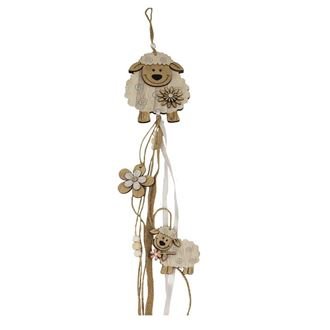 Dekorace k zavěšení. Rozměry : 10 x 1 cm, váška 13,2 cm, celková délka dekorace 70 cm. Barva : kombinace bílá s přírodní. Materiál na bázi dřeva. prečítať celé