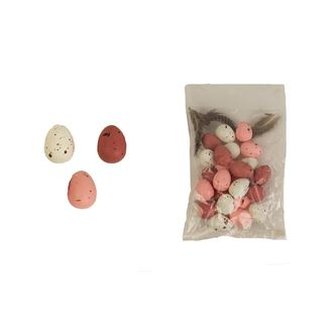 Sada dekoračních vajíček. Sada obsahuje 24 vajíček. Rozměry : průměr 2 cm, výška 2,5 cm. Barva : kombinace růžová, bílá. Materiál : polystyrén. prečítať celé