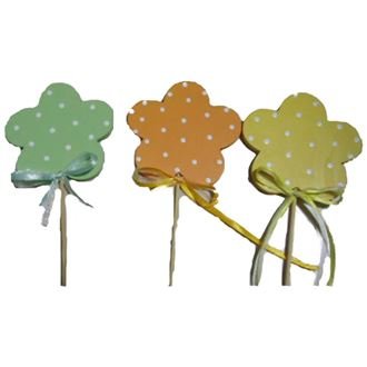 Sada dekoračních zápichů. Sada obsahuje 12 ks 4 ks - žlutá kytka 4 ks - oranžová kytka 4 ks - zelená kytka. Rozměry : délka 31 cm, průměr kytky 7,5 cm. Materiál - dřevo, špejle. prečítať celé