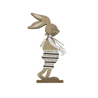 Dekorační zajíc. Rozměry : 13 x 4,5 cm, výška 28 cm. Barva : kombinace přírodní s bílou. Materiál na bázi dřeva. prečítať celé