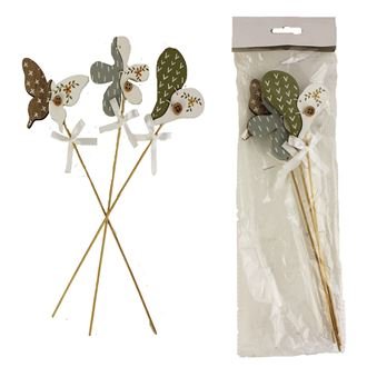 Sada dekoračních zápichů.Sada obsahuje 3 zápichy.Rozměry : 6 - 6,5 x 0,5 cm, výška 25,5 cm.Barva : kombinace bílá s hnědou, šedou a zelenou.Materiál : dřevo. prečítať celé