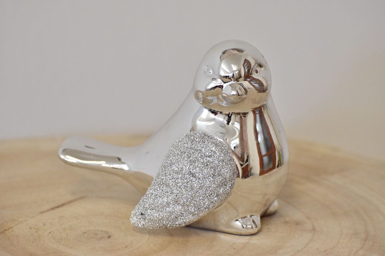 Stříbrný ptáček.Materiál: keramikaRozměry:výška 9,5 cmšířka 10,5 cmhloubka 8 cm prečítať celé