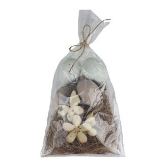 Sada na tvoření.Sada obsahuje vajíčka , přízdoby, trávu.Rozměry : vajíčka mají průměr 5 cm, výšku 4 cm, přízdoby 5 x 0,2 x 4,5 - 5 cm.Barva : kombinace přírodní, hnědá, bílá.Materiál na bázi dřeva, plast, přírodní. prečítať celé