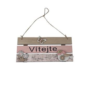 Čistý a vkusný dizajn spája prírodné tóny so sviežou ružovou a bielou farbou, ktoré sa skvele hodia do moderných aj rustikálnych interiérov. Ceduľka je vyrobená z kvalitného materiálu na báze dreva, ktorý dodáva produktu prírodný vzhľad a solídnu odolnosť. Vďaka rozmerom 24 × 10,5 cm a hrúbke 1,5 cm je dostatočne výrazná, no zároveň nenápadne zapadne do priestoru.