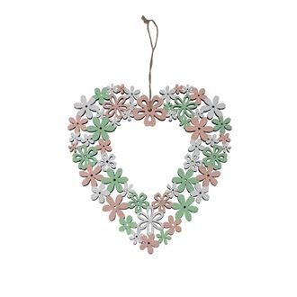 Toto dekoratívne srdce na zavesenie je ideálnym doplnkom pre váš interiér alebo darčekom pre niekoho blízkeho. Jeho jemná kombinácia ružovej, bielej a zelenej farby vytvára príjemný a harmonický vizuálny efekt, ktorý zaujme na prvý pohľad. Vďaka rozmerom 22,5 × 21 cm a hrúbke 0,5 cm sa ľahko zavesí na stenu, dvere alebo iné miesta, kde chcete dodať priestoru osobitý výraz.
