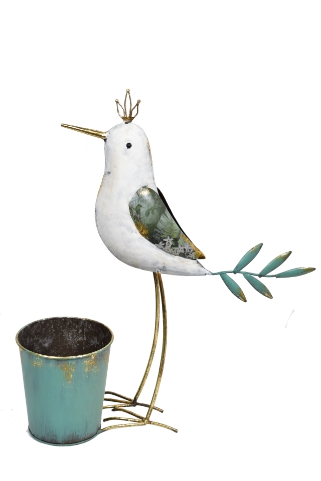 Kovový ptáček s květináčem 43x37x15,5 cm