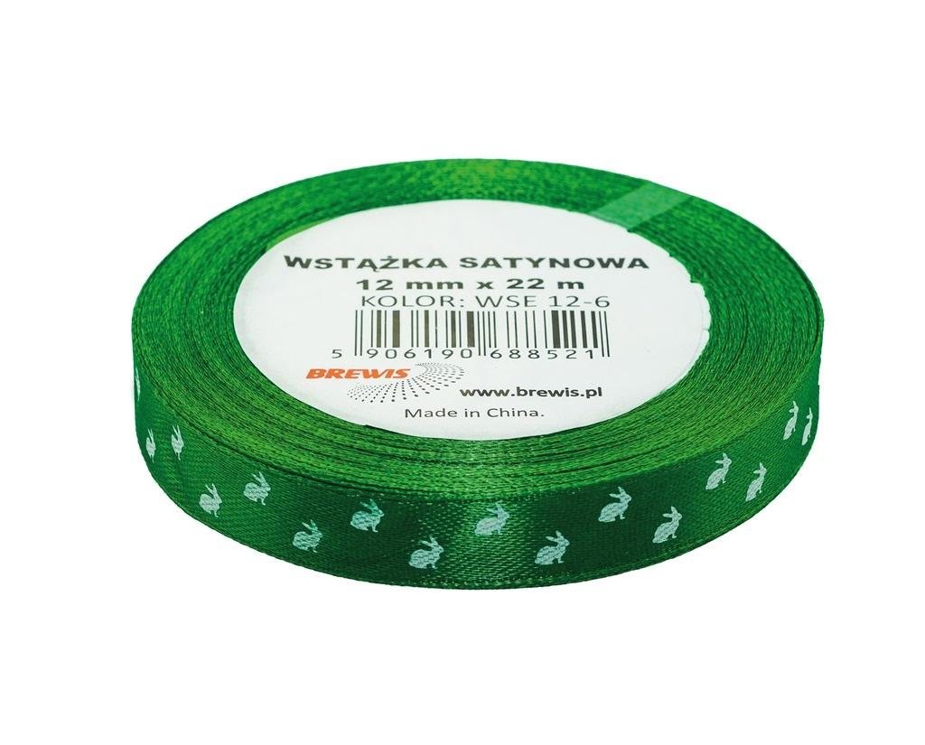 Wstążka satynowa wielkanocna zielona 12mmx22m