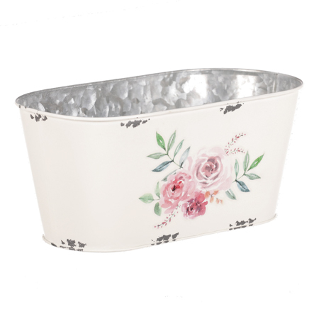 Tento krásný kovový obal na květiny v podobě truhlíku bude skvělým a netradičním doplňkem pro výzdobu vašeho oblíbeného prostoru. Svým vzhledem se hodí nejlépe pro jarní nebo letní sezónu, ale v podstatě jej můžete využívat celoročně. Je v bílé barvě a má oválný tvar. Na boku je barevný obrázek...