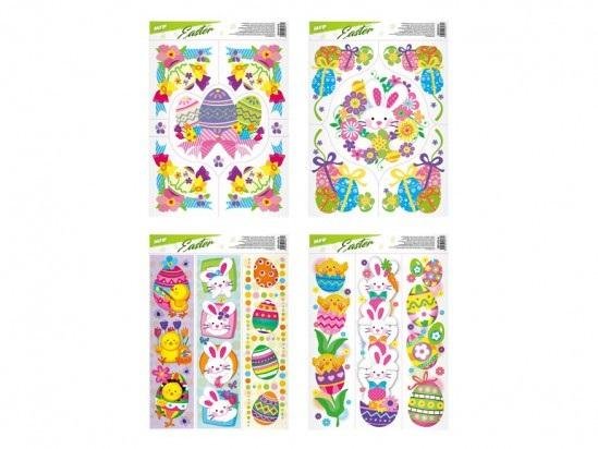 Folia statyczna na okno Wielkanoc. Stwórz świąteczną atmosferę w swoim domu. INSTRUKCJA: Obrazek odkleić od podłoża i umieścić na czystej, ewentualnie zwilżonej szybie stroną, która byłą przyczepiona do podłoża. Obrazek przylgnie elektrostatycznie. Obrazek można łatwo zdjąć i przenieść w inne miejsce. Dostarczane w miksach po 4 szt. Wymiar: 300mm x 420mm x 1mm (szer. x wys. x gł.)