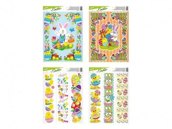 Folia statyczna na okno Wielkanoc. Stwórz świąteczną atmosferę w swoim domu. INSTRUKCJA: Obrazek odkleić od podłoża i umieścić na czystej, ewentualnie zwilżonej szybie stroną, która byłą przyczepiona do podłoża. Obrazek przylgnie elektrostatycznie. Obrazek można łatwo zdjąć i przenieść w inne miejsce. Dostarczane w miksach po 4 szt. Wymiar: 300mm x 420mm x 1mm (szer. x wys. x gł.)