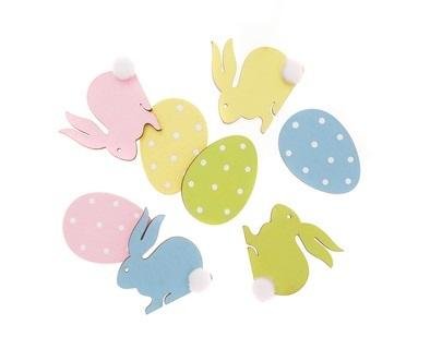 Pastelowy zestaw drewnianych kształtów z motywem króliczków z futrzanym ogonkiem i jajek z wzorem kropek.Idealne do wykorzystania w różnych pracach kreatywnych, projektach typu cardmaking, scrapbooking i homedecor.Pęknie prezentują się w naturalnej postaci, ale można je również ozdobić wszelkimi...