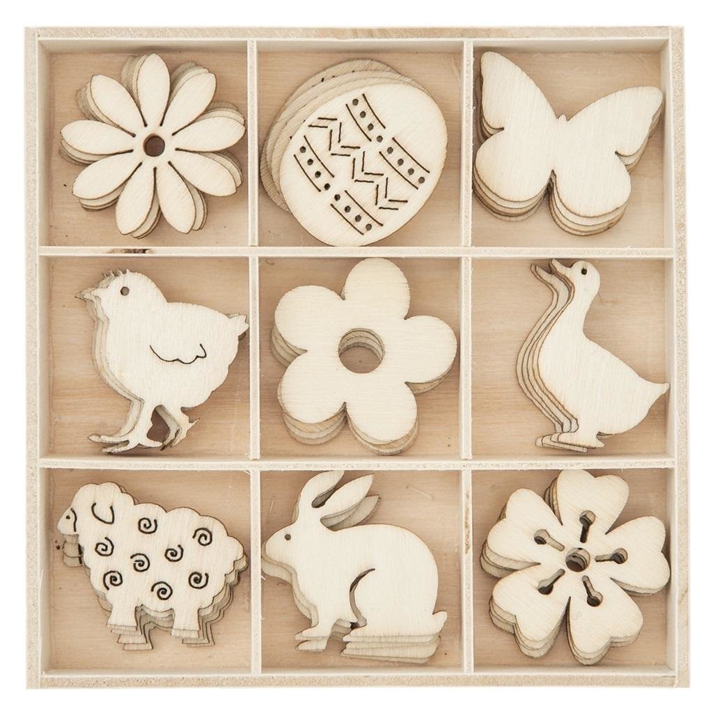 Wyjątkowe kształty z drewna, "sielska wielkanoc", to doskonałe elementy do wielkanocnych projektów rękodzielniczych. W drewnianym opakowaniu znajduje się aż 45 chipboardów w dziewięciu uroczych wzorach: kwiatków (3 wzory), motylków, owieczek, królików, kurczaczków, gąsek oraz pisanek. Część...