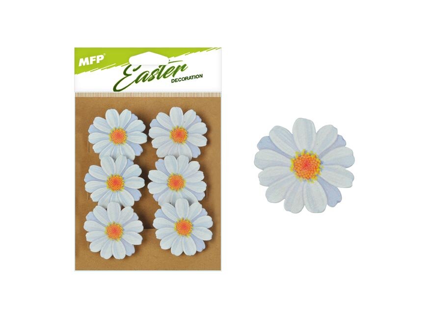 Kolíčky v designu dřevěných květů kopretin, poslouží jako krásná dekorace do exteriéru nebo na zkrášlení interiéru.Balení obsahuje:- 6 ks kolíčků (kopretina)Dodáváme v sáčku se závěsem.Uvedená cena je za 1 balení. prečítať celé