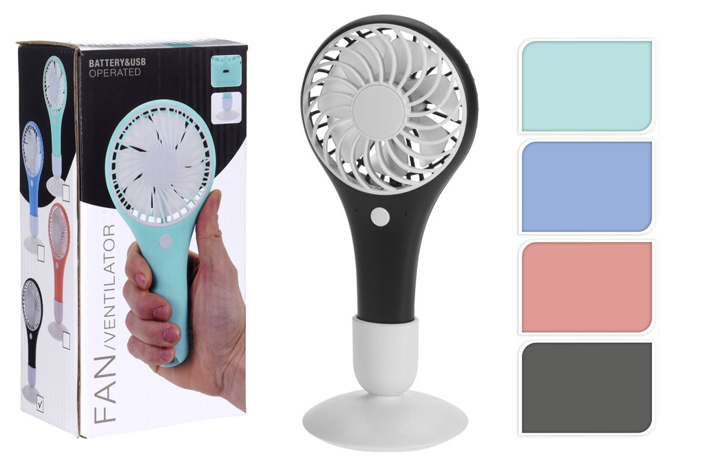 Skvělý mini ventilátor má vlastní odjímatelný stojánek. Ventilátor se drží velmi pohodlně a je ho možné také postavit na stojánek. Ventilátor světle tyrkysově zelené barvy má dva stupně rychlosti ventilace. Napájení můžete zvolit buď 3x AAA baterií nebo ho můžete zapojit pomocí USB do powerbanky,...