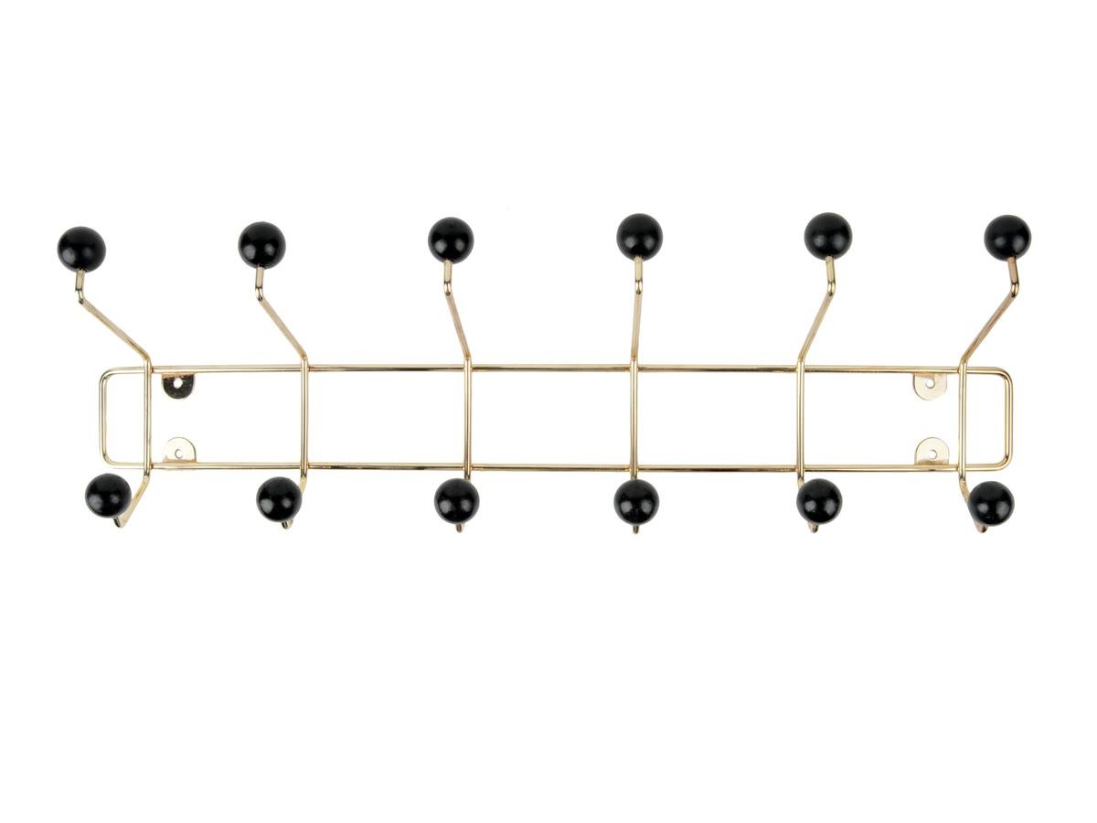 Nástěnný věšák je ve zlatém provedení s ozdobným černým kulatým zakončením.