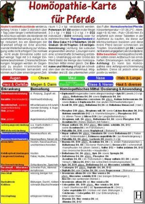Homöopathie-Karte für Pferde, Tierheilkunde-Karte (německy)