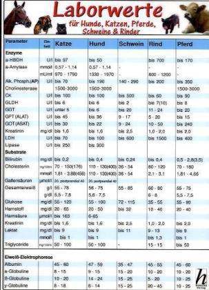 Laborwerte für Hunde, Katzen, Pferde, Schweine & Rinder, Tierheilkunde-Karte (německy)