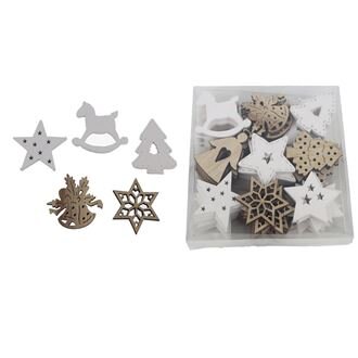 Nebuďte obmedzení tradičnými ozdobami - táto sada 72 kusov vianočných ozdôb ponúka dokonalý mix prírodných a bielych odtieňov, ktoré oživia každý vianočný stromček či dekoráciu. Každý kúsok je vyrobený na báze dreva, čo pôsobí veľmi autenticky a pridáva teplý, prírodný vzhľad vašej výzdobe.