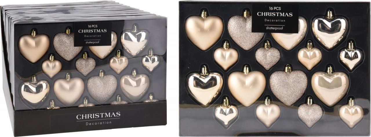 Vánoční baňky Azra srdce krém 16 ks