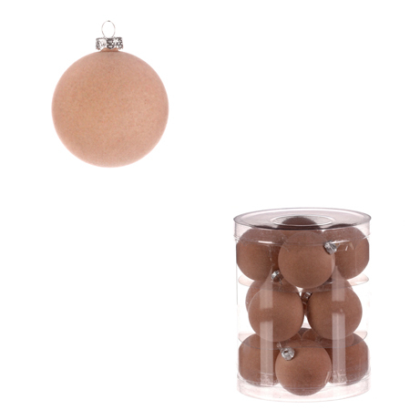 Kulaté sametové vánoční ozdoby na pověšení v elegantní cappuccino barvě, průměr 5 cm. V PVC boxu najdete 12 ks těchto krásných ozdob, které dodají vašemu vánočnímu stromku luxusní vzhled a příjemný barevný odstín. Perfektní pro vytvoření slavnostní atmosféry plné kouzla a elegance.