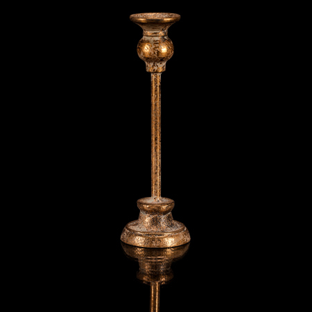 Svícen vysoký kovový - výška 23 cm, na podstavci, barva zlatá.