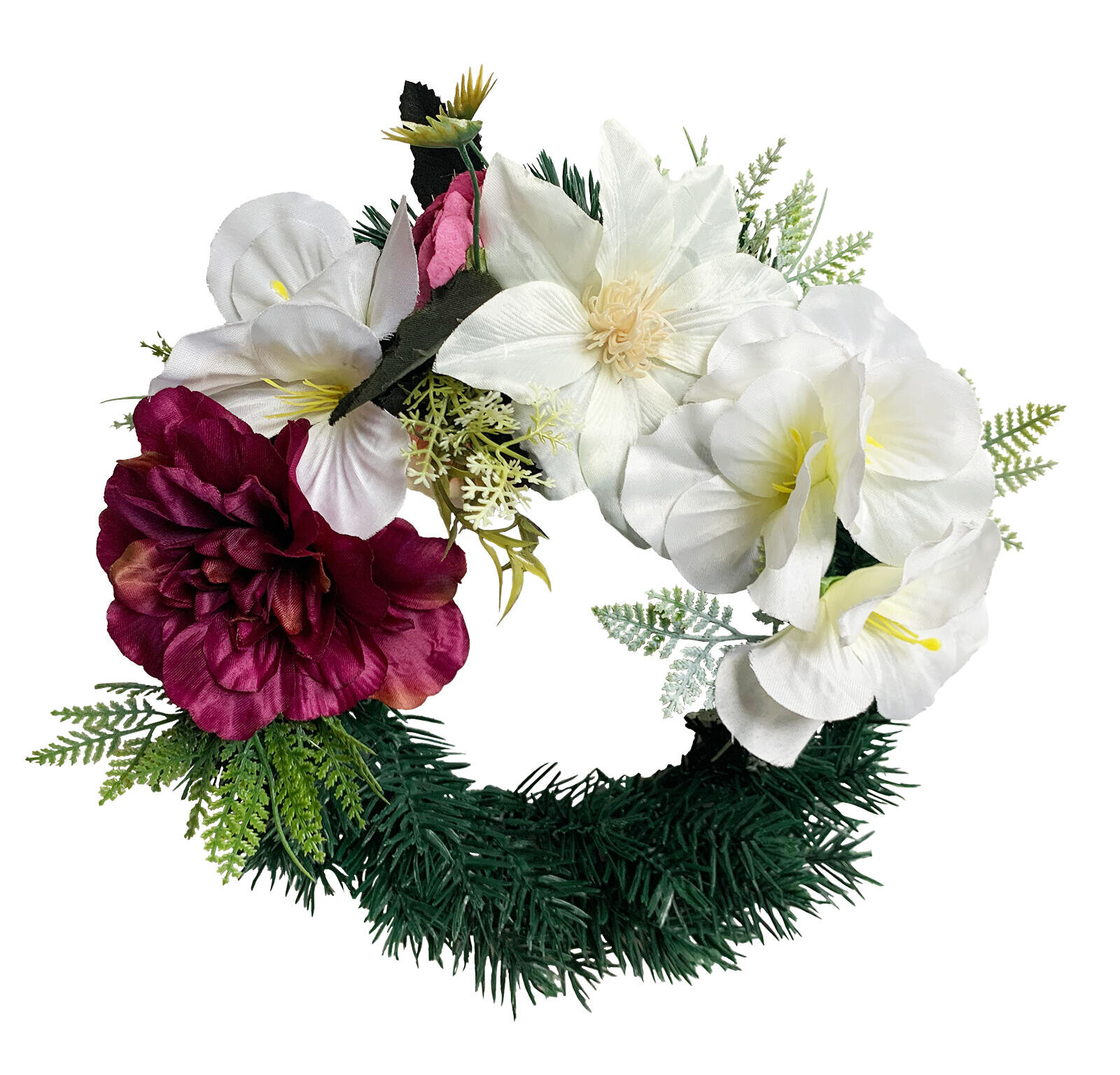 dekorace VĚNEC dušičkový pr.28cm BÍ,ČRV květy