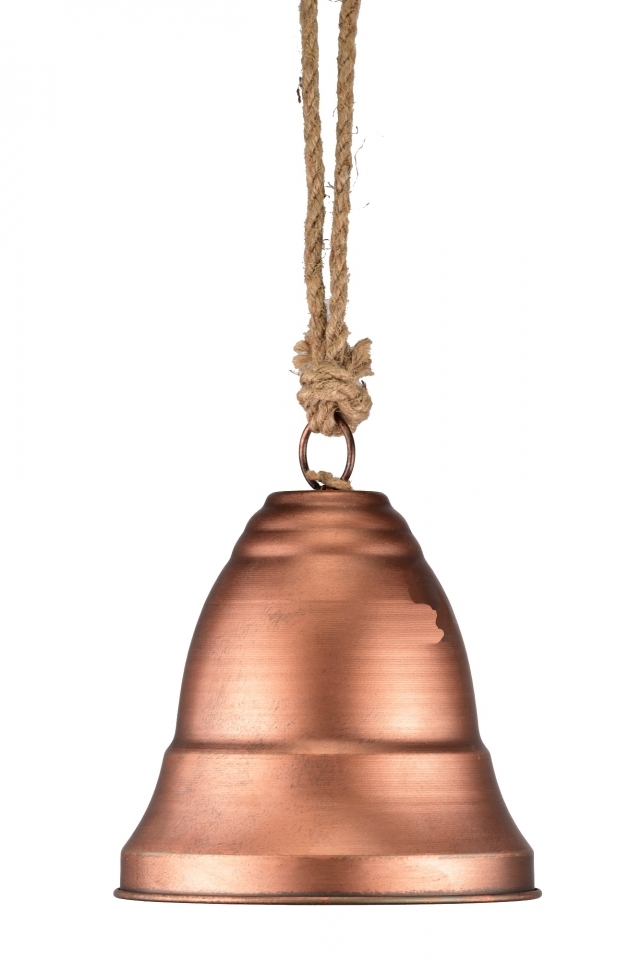 Kovový zvonek měděný s patinou na jutovém provaze 17,5x18 cm