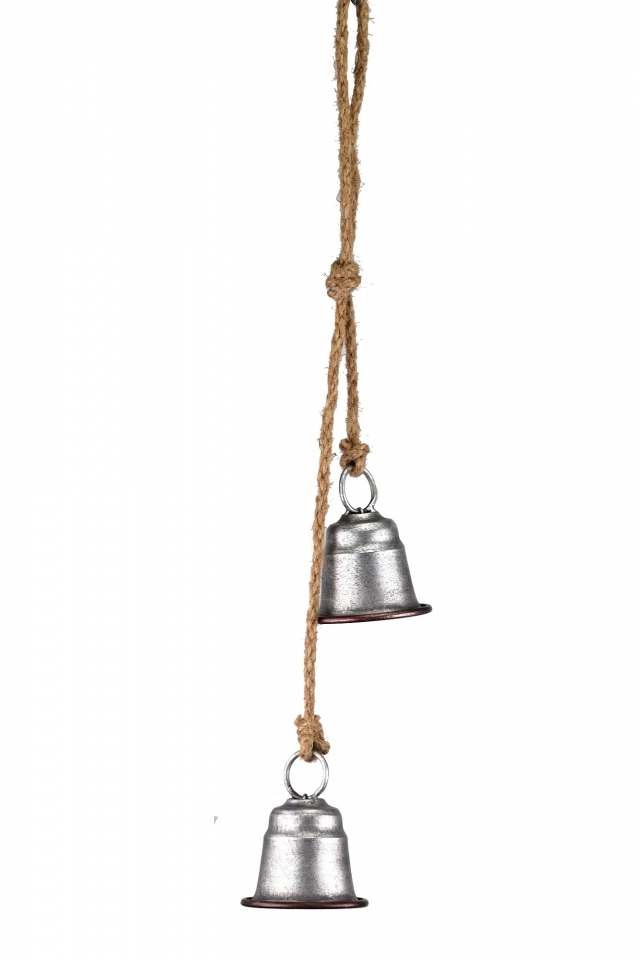 Dva stříbrné kovové zvonky na jutovém provaze 7x5,8x50 cm
