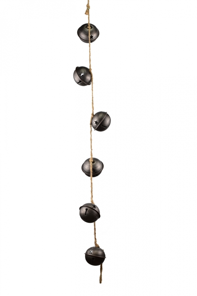 Šest kovových rolniček na jutovém provaze.Materiál: kov, jutaRozměry:délka celkem 82 cmvýška rolničky 4 cmprůměr 6 cm prečítať celé