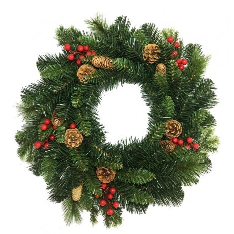 Věnec chvojový zdobený - bobule, šišky (dle obrázku), průměr 50 cm. Stejný typ jako girlanda č. art. 530-0070. prečítať celé