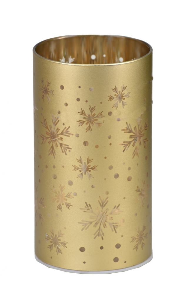 Skleněný LED svícen s prosvítajícím motivem vloček. LED diod 10 ks, napájení 3x AA tužkové baterie. Baterie nejsou součástí výrobku.Materiál: sklo, plastRozměry:výška 16 cmprůměr 9 cm prečítať celé