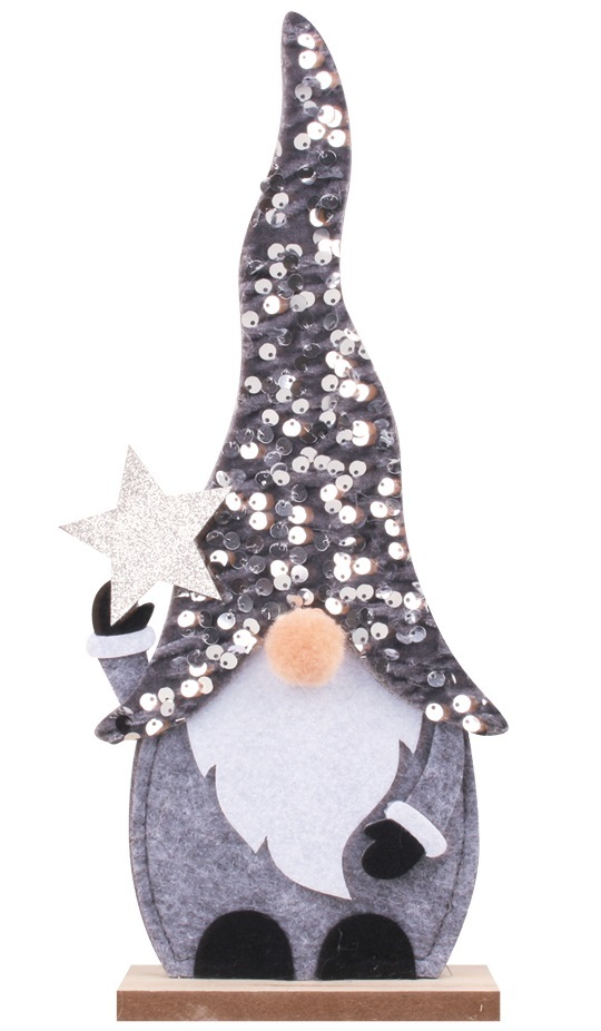 Filcový skřítek s glitrovou čepicí na postavení 29 cm
