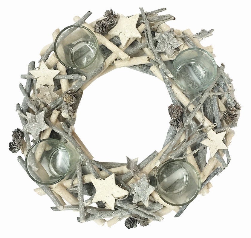 Adventní věnec bílošedý dřevěný z větviček 30 cm