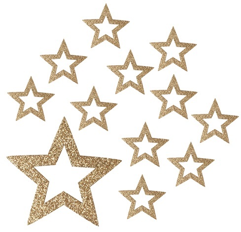 Hvězdy s glitry 5 cm, 12 ks zlaté