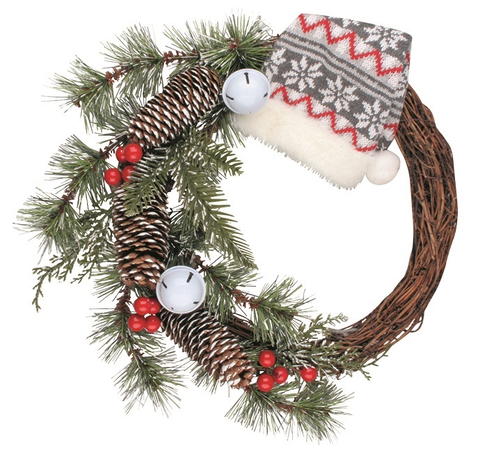 Věnec s pletenou čepicíOriginální věnec s pletenou čepicí, šiškami a drobnými dekoracemi vytvoří hřejivou zimní atmosféru i u vás doma.Věnec krásně vynikne třeba na vašich vchodových dveřích.Průměr věnce je 30 centimetrů. prečítať celé