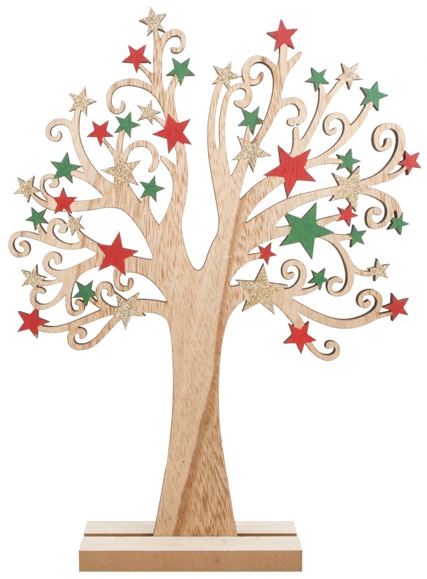 Strom dřevěný s barevnými hvězdami 22 x 30 cm