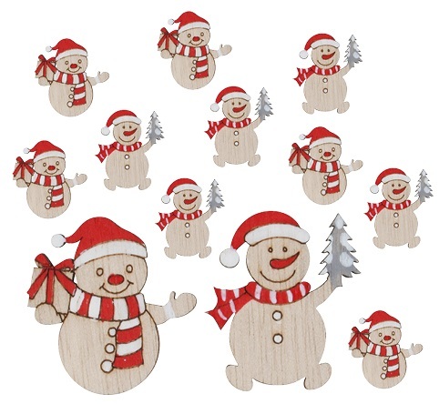 Sněhuláci s lepíkem 4 cm, 12 ks červení
