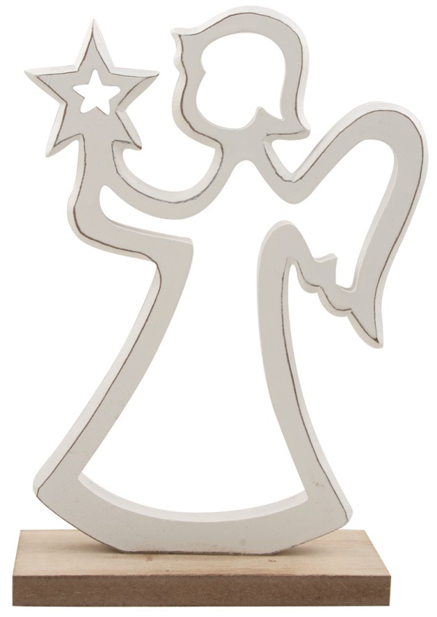 Dřevěný anděl na postaveníAnděl s hvězdičkou v moderním designu se hodí téměř do každého interiéru!Vytvořte si doma s jeho pomocí příjemnou zimní atmosféru.Andílka můžete také věnovat jako dárek nebo pozornost. prečítať celé