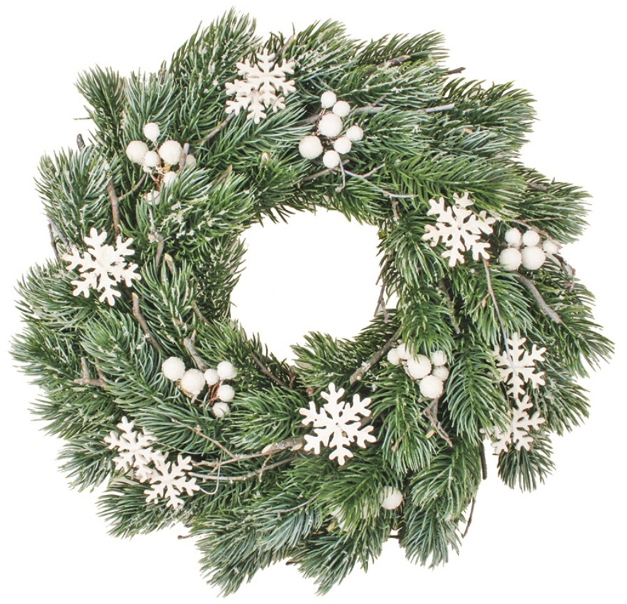 Věnec z jehličí s bílými dekoracemi 35 cm