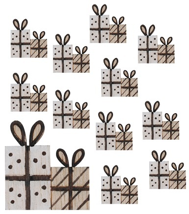 Dřevěné dárky s lepíkemDárečky využijete k dekoračním, aranžérským či výtvarným účelům. Můžete s nimi ozdobit obálky, přáníčka nebo třeba pozvánky.  prečítať celé