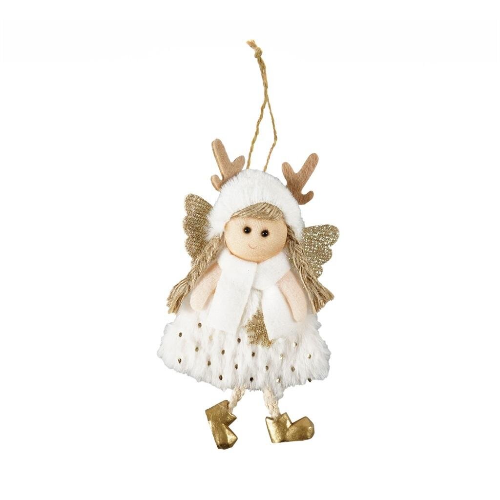 Świąteczna zawieszka dekoracyjna w kształcie aniołka. Dostępna w trzech wariantach kolorystycznych - białym, różowym oraz szarym. Ozdoba zawiera błyszczące elementy brokatowe. Sukienka oraz czapeczka aniołka została wykonana z materiału imitującego futerko. Nóżki są ze sznurka, nieusztywnione....