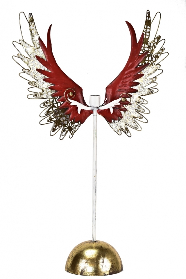 Plechový svícen andělská křídla bílo-zlatý 57 cm
