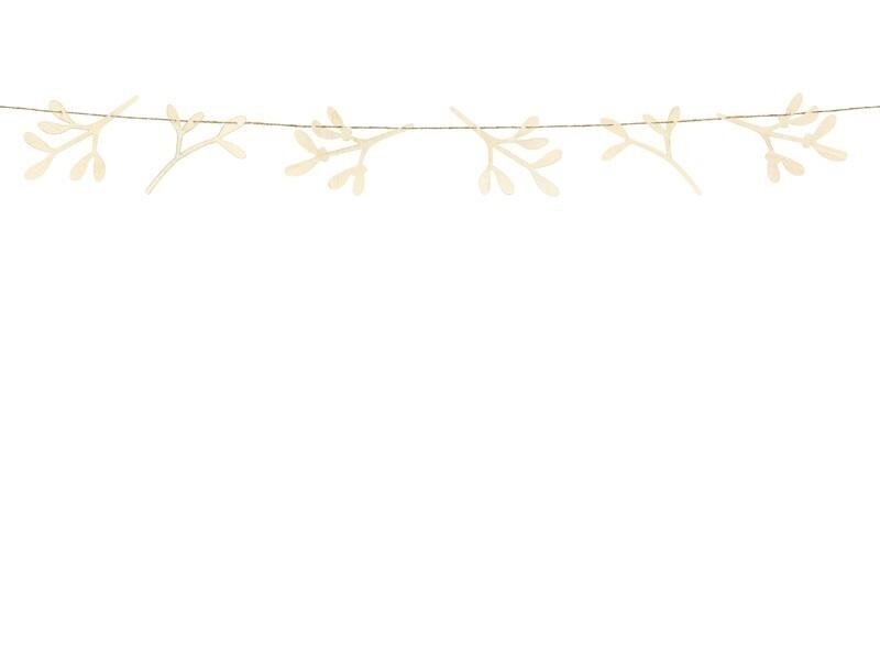 Girlanda Jemioła wykonana z drewna, zestaw zawiera 3 wzory gałązek, po 2 z każdego wzoru oraz ok. 2 m lnianego sznurka, wymiary po złożeniu: długość ok. 127 cm, wysokość ok. 10,5 cm. Produkt do samodzielengo złożenia. prečítať celé