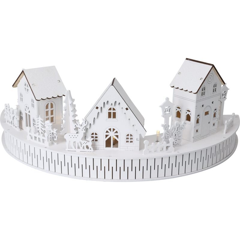 Vánoční dekorace zimní scenérieRozměry: 40 x 20 x 16,5 cm3 x dům s postavičkamiLED osvětlení 10 ksNapájení: 2x AA baterie (nejsou součástí balení)Barva: bílá prečítať celé