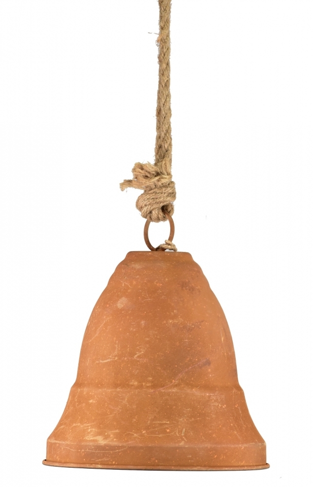 Kovový zvonek rezavý s patinou na jutovém provaze 18x18,5 cm