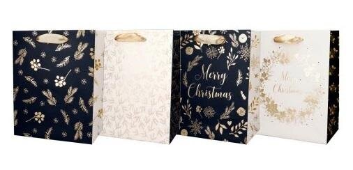 Torby prezentowe papier 210gsm zdobione hot stampingiem -18x23x10cmMix wzorów, produkt wysyłany losowo, cena za 1 sztukę. prečítať celé