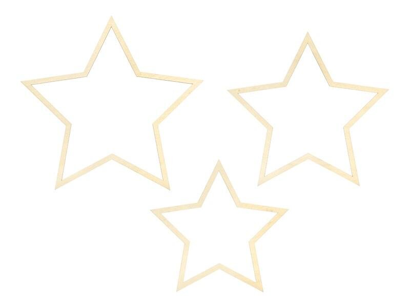 Zawieszki dekoracyjne Gwiazdy wykonane z drewna, zestaw zawiera 3 gwiazdy, wymiar od ok. 35 x 33 cm do ok. 26,5 x 25 cm.(1 op. / 3 szt.) prečítať celé