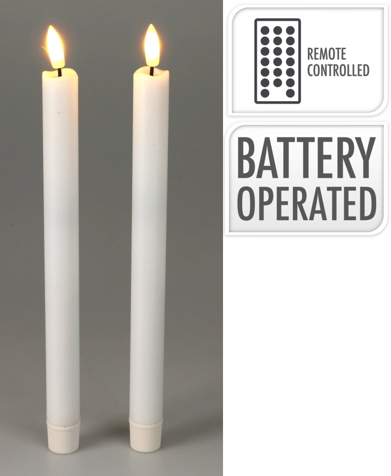 Sada 2 ks LED kónických svíček. Svíčka je věrnou imitací pravé svíčky. Umí navodit příjemnou atmosféru na dušičky, Vánoce, ale i v létě na terase. Součástí časovač 6/18h. Součástí je také ovladač včetně baterie 1x CR2025.
